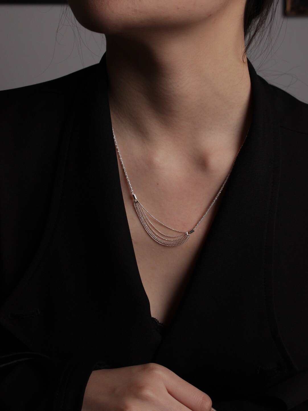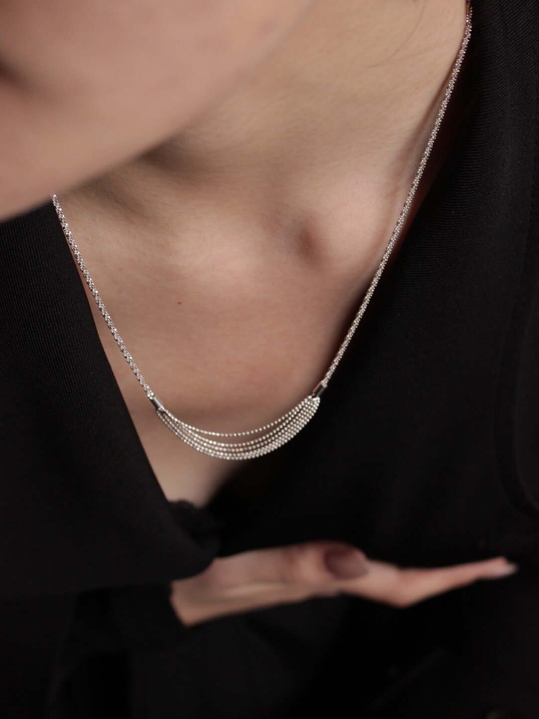 Its most unique feature is the flowing beauty: the fringe made of multiple thin chains sways gently when you walk or turn your head, creating dynamic light and shadow around your neck while subtly enhancing your collarbone curve. It’s more vibrant than ordinary static necklaces. Crafted from 925 sterling silver, it’s hypoallergenic, so it won’t irritate sensitive skin. The finely woven thin chains are lightweight, feeling almost weightless on your neck—comfortable enough for all-day wear.