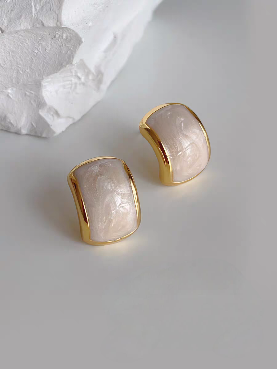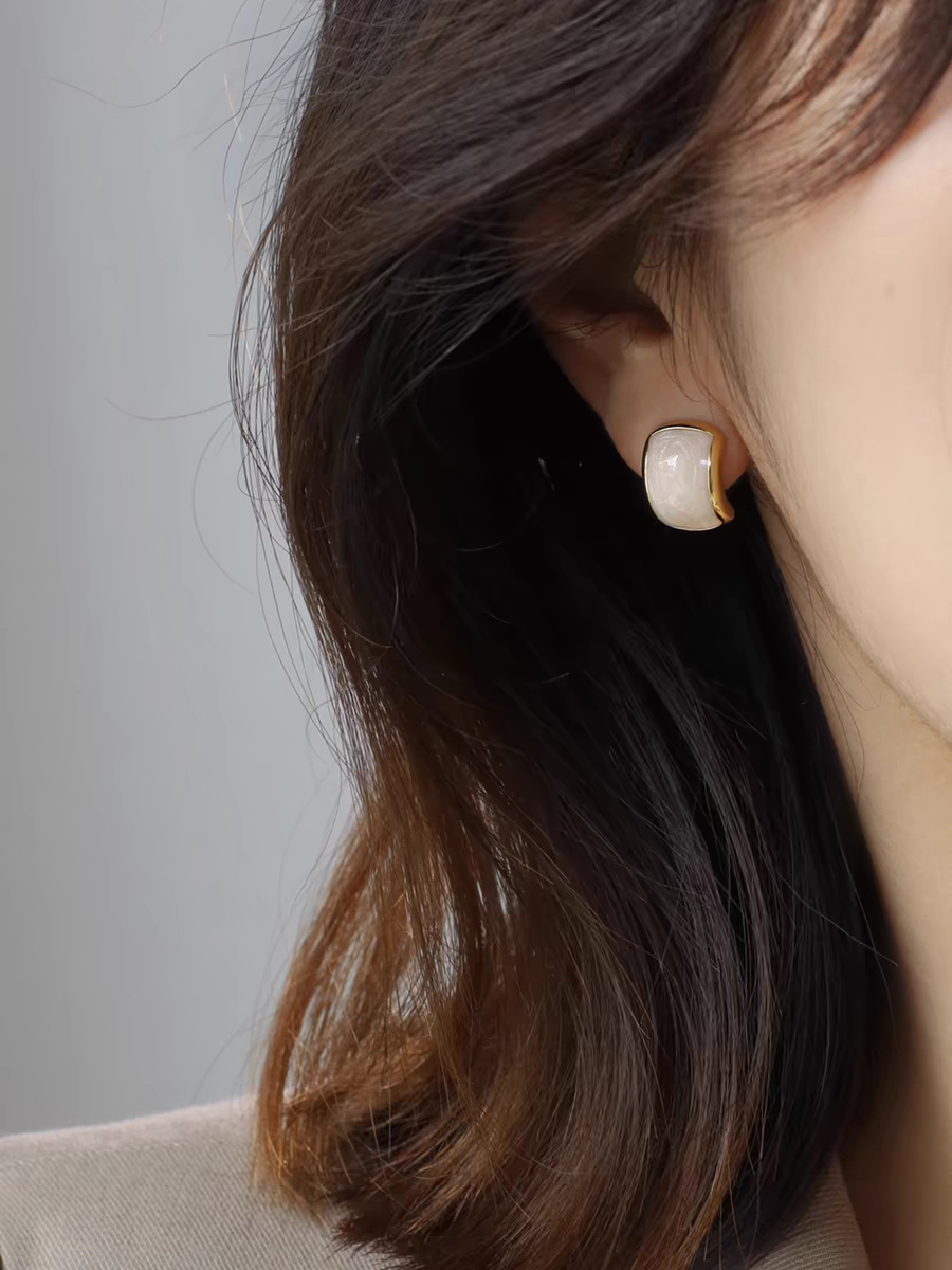 Elegant Enamel & Metal Design: Features a high-quality white enamel with a soft, textured look, set in a gold tone metal frame. They catch the light beautifully for a subtle, luxurious effect.