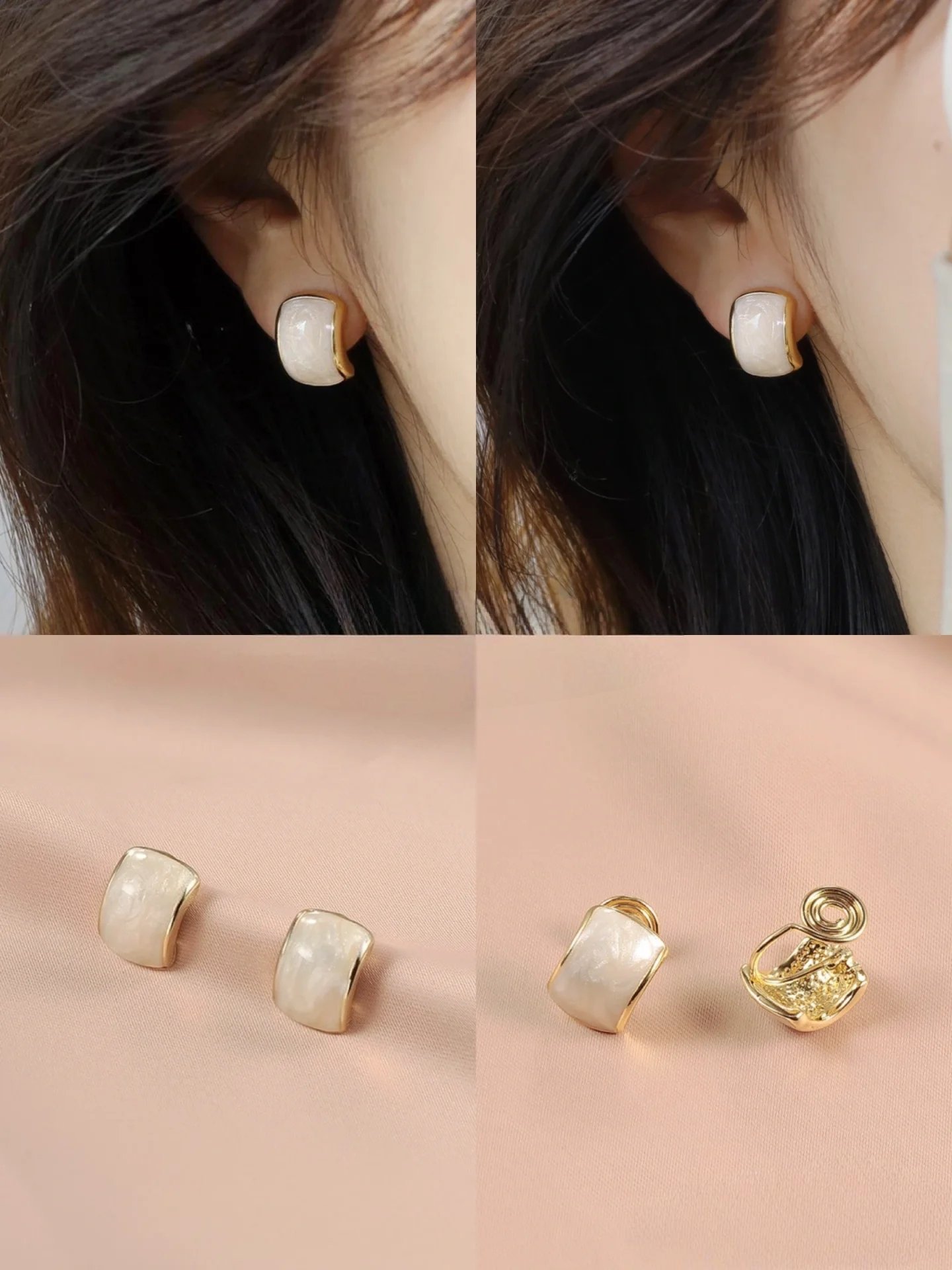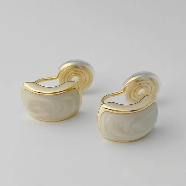 Experience the timeless charm of French style, no piercings needed. These elegant white enamel ear clips are designed for everyone. They feature a beautiful, creamy white finish with delicate texture, framed in a gold tone metal for a touch of effortless sophistication.