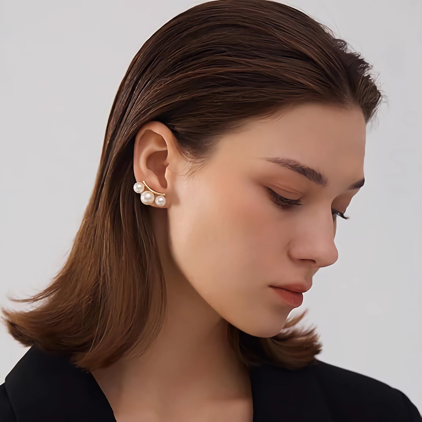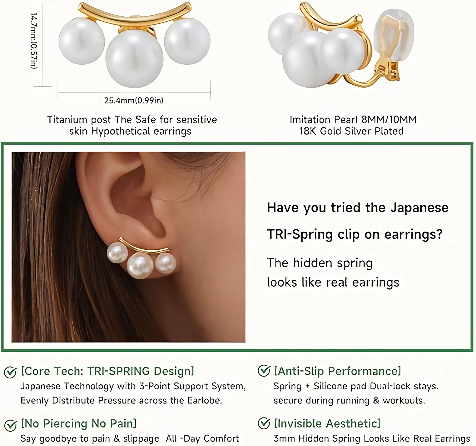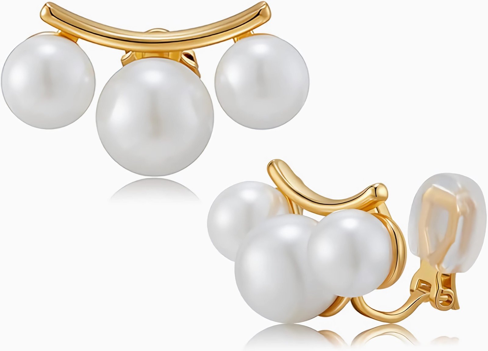 • Designer Elegance Clip on Earrings: Our clip on pearl earrings for women, Lightweight invisible clip on earrings for non pierced ears and sensitive. Pearl earrings are 8-10mm pearl with a radiant, high-gloss finish, three pearl are integrated into the metal line, exuding a silent sense of luxury, gentle with a strong presence, elevate your look effortlessly.