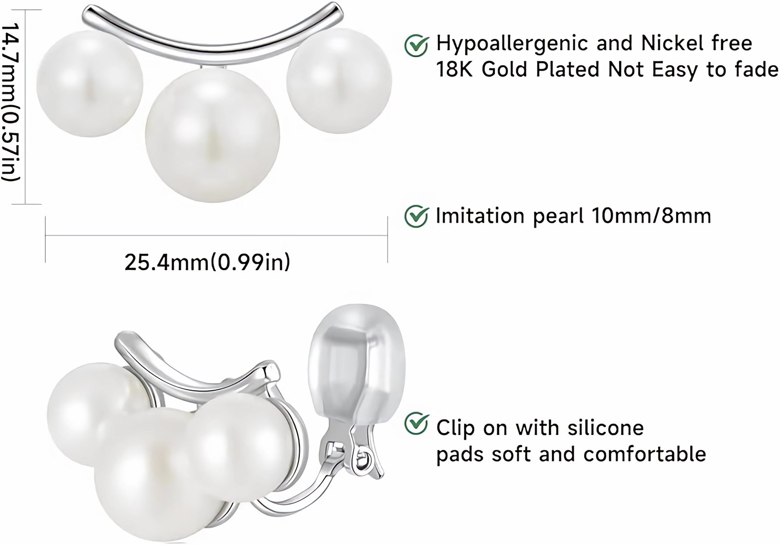 • Exquisite Packaging: These pearl clip on earrings, Arrive in a pair of silicone pads for replcement. Ready-to-Gift Packaging